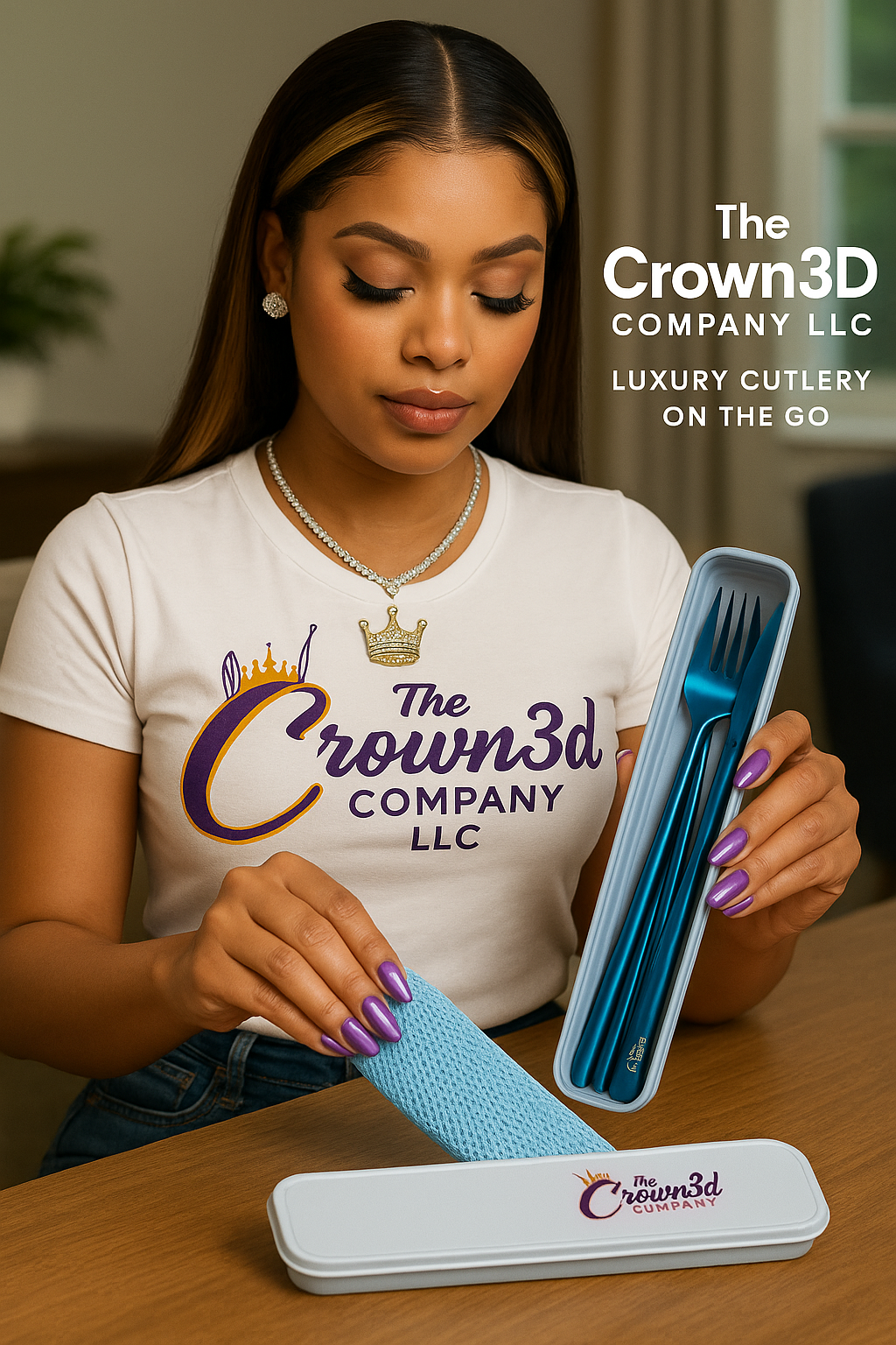 At The Crown3D Company LLC, our mission is to eliminate single-use plastic utensils by providing luxury, reusable cutlery that empowers individuals to protect the planet in style. We believe sustainability should never compromise sophistication, and our signature sets are crafted to blend functionality, fashion, and environmental impact.